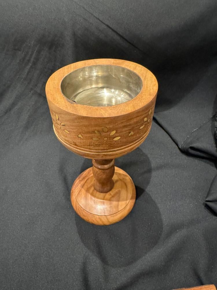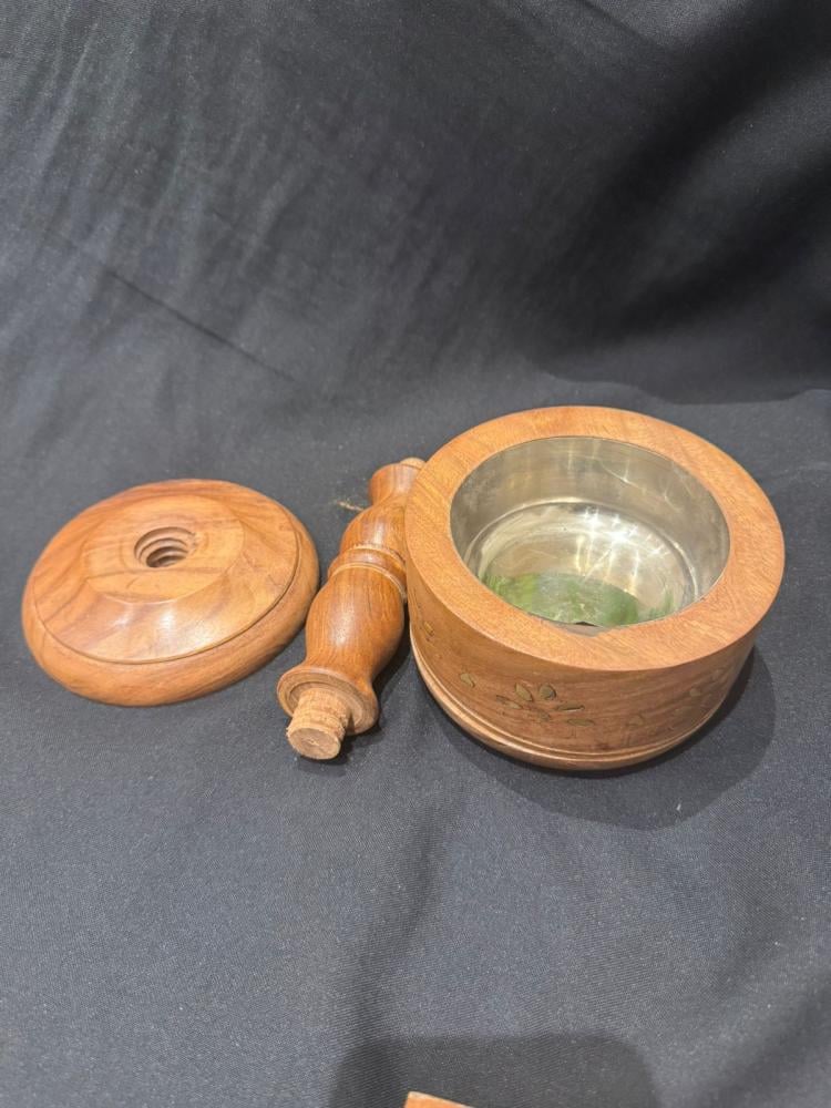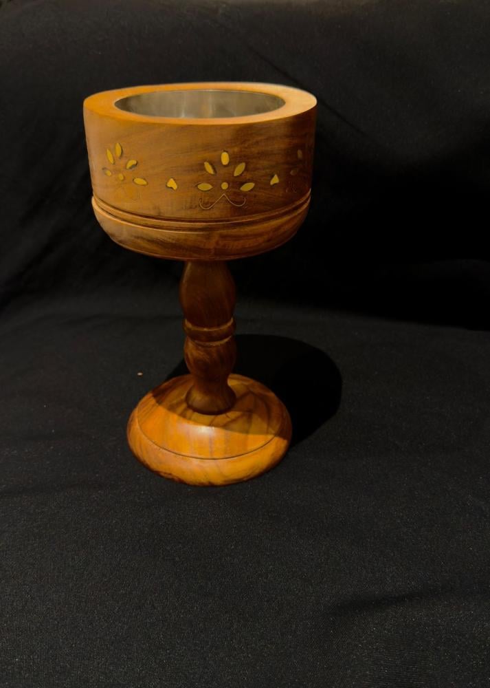 مبخرة خشب هندي مصنوعة يدوياً من شجر الشان الطبيعي ومزينة بالنحاس لتضفي لمسة تراثية ساحرة على مجالسكم.